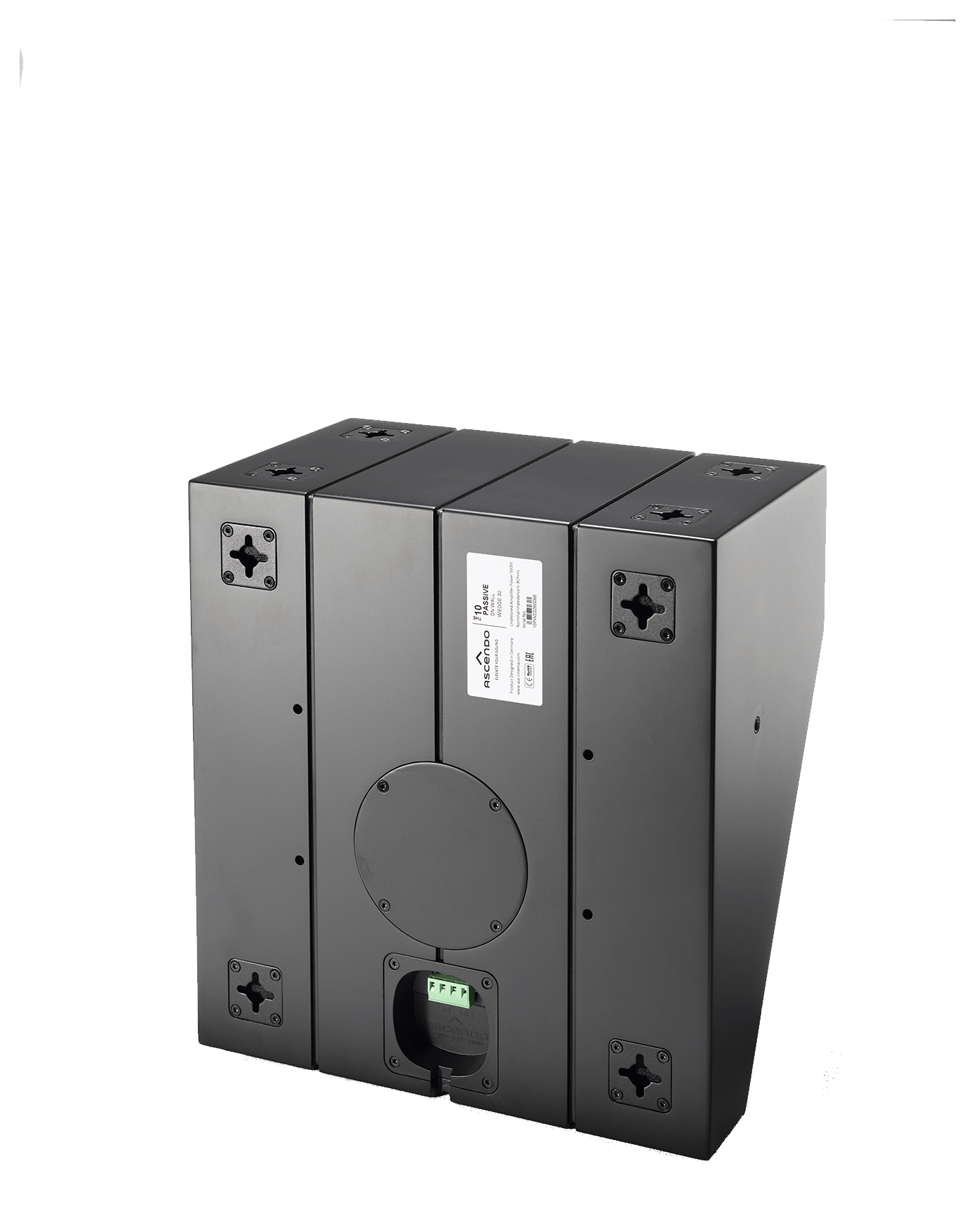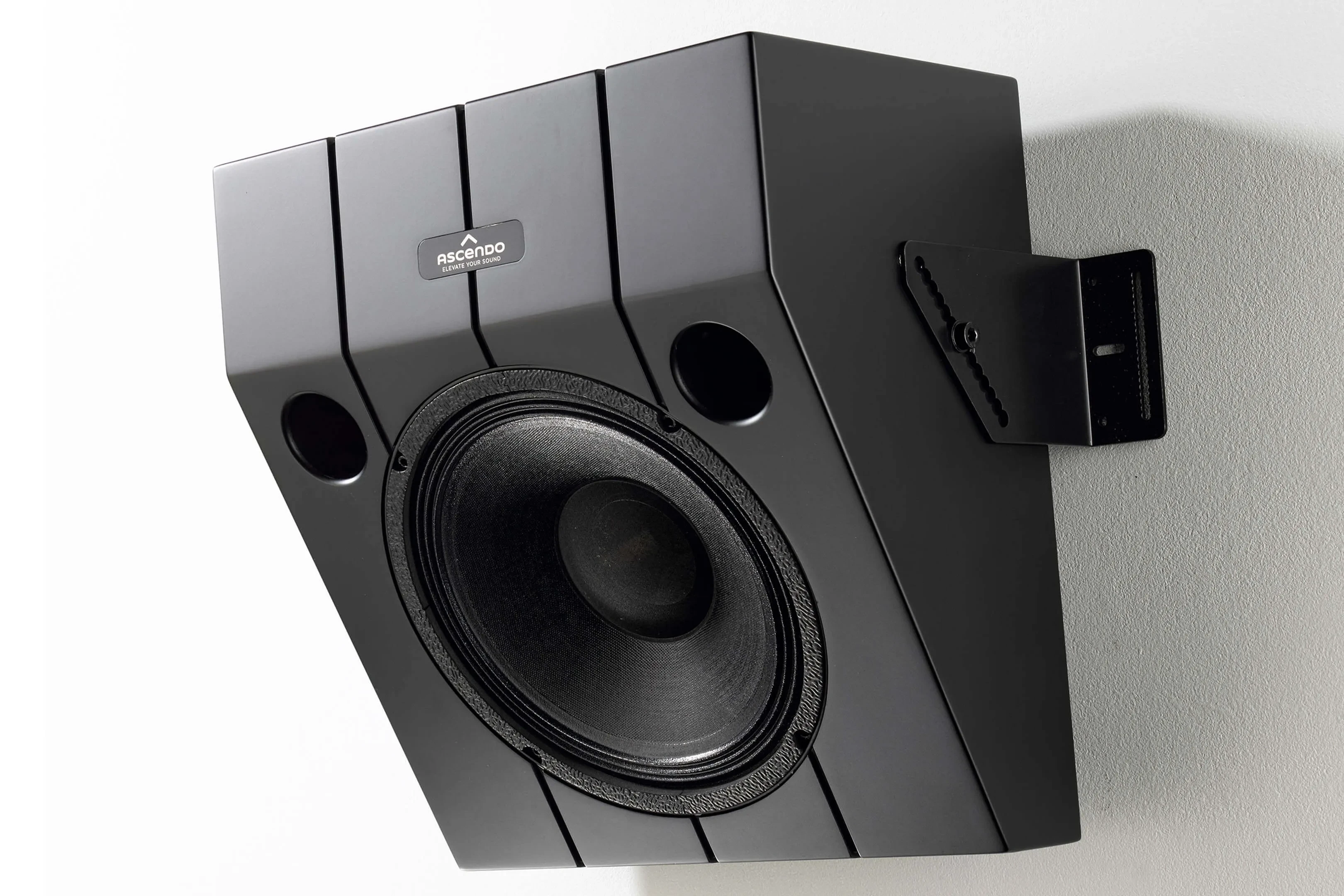 The design objective for this model was to offer a pre-angled version of THE10 PASSIVE ON WALL that can be installed in multiple locations where angling the speakers is mandatory. Such locations include but are not limited to front wide, Atmos and DTS top front and rear, front or rear high surrounds, side surrounds etc.
